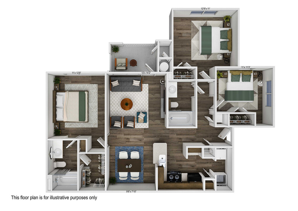 Apartment Model: 3 Bedroom 2 Bathroom C1From $1,4953 Bedroom, 2 Bath, 1120 sq ftAvailable Now![]()