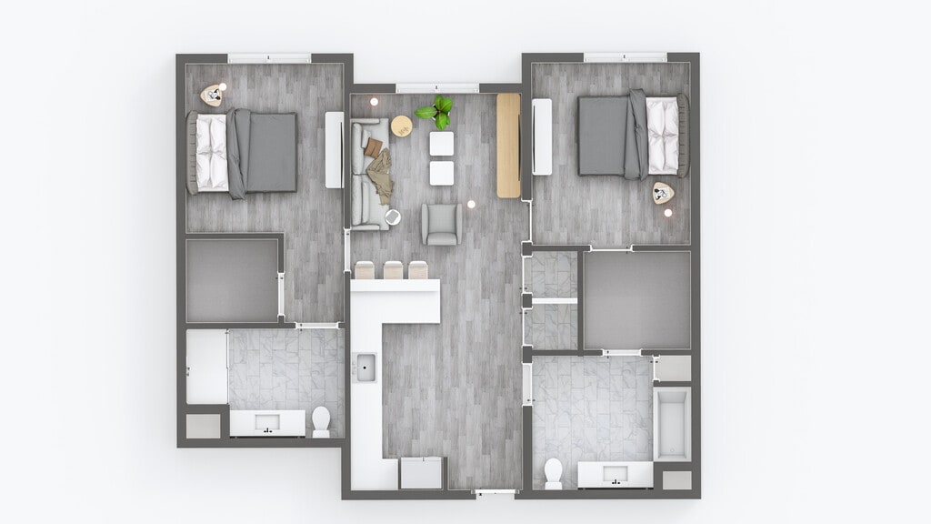 2 Beds, 2 Baths, 925-1054 sq ftModel Gallery