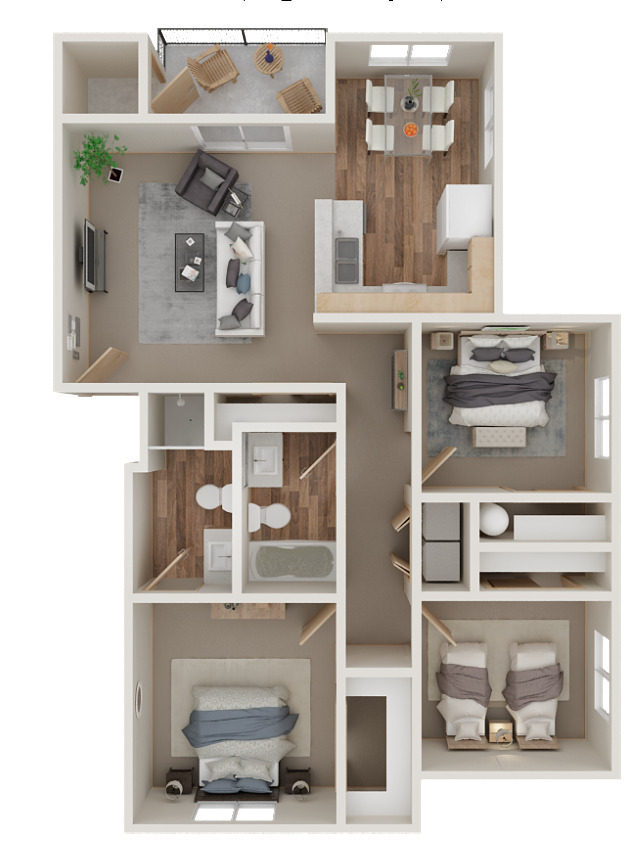 Apartment Model: 3 Bed 2 BathFrom $1,8993 Bedroom, 2 Bath, 1103 sq ftAvailable Now![]()