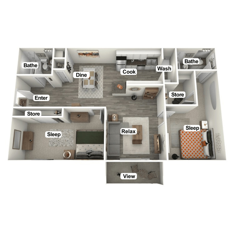 2 Beds, 2 Baths, 1029 sq ftAvailable NowModel Gallery