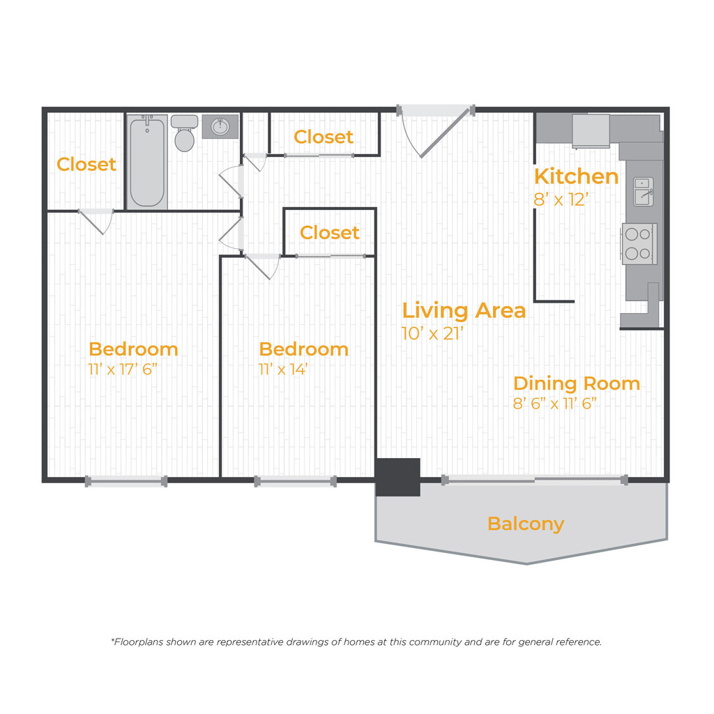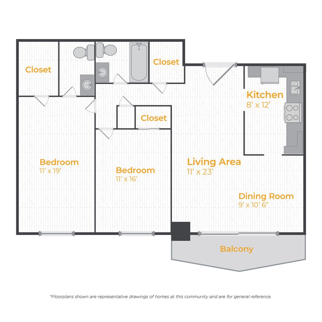2 Beds, 1.5 Baths, 970 sq ftAvailable NowModel Gallery