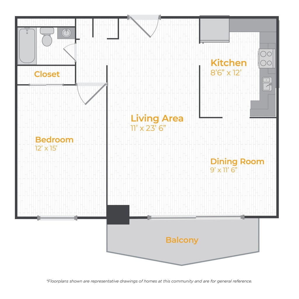 Studio, 1 Bath, 395 sq ftAvailable January 2, 2026Model Gallery