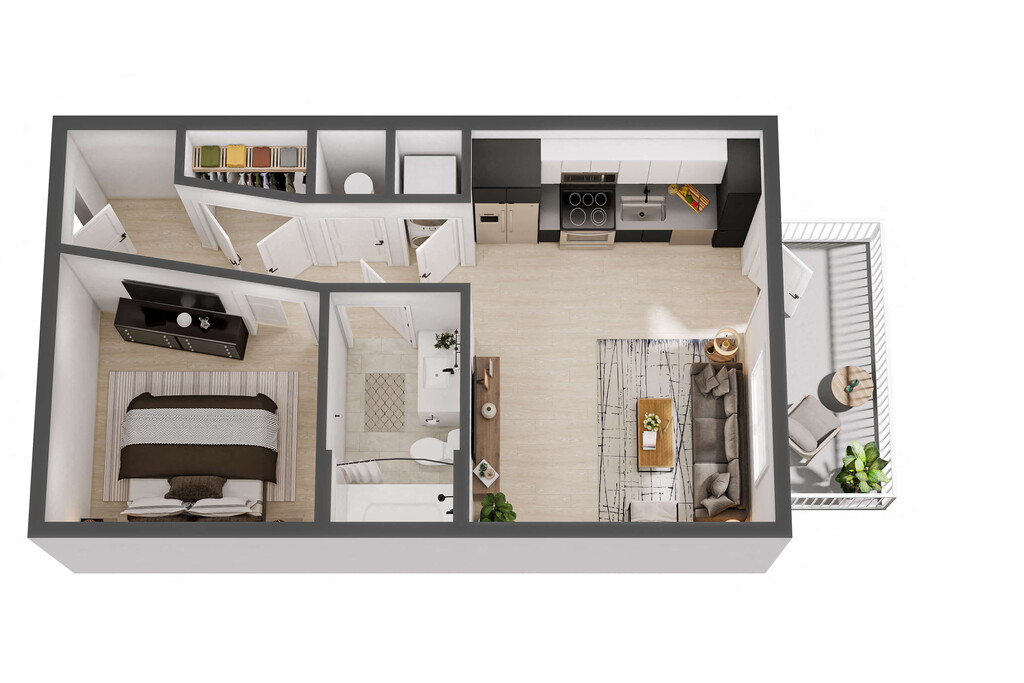 1 Bed, 1 Bath, 672 sq ftAvailable NowModel Gallery