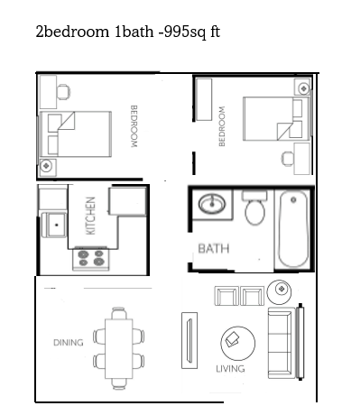 Apartment Model: 2 bedroom 1 bathFrom $2,3992 Bedroom, 1 Bath, 995 sq ftAvailable Now![]()