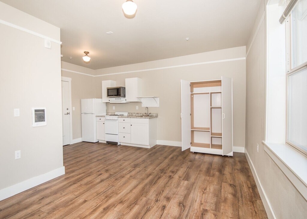 Recently renovated studios available now! Our apartments and community spaces feature modern amenities alongside historic charm! Recently renovated our homes offer expansive windows, plank flooring and pets are welcome! Other amenities include onsite laundry facilities, complimentary WiFi, dog washing station, bike storage and parking! Come by and see what specials we are offering!