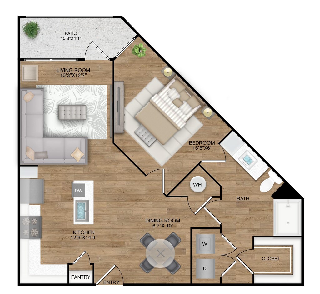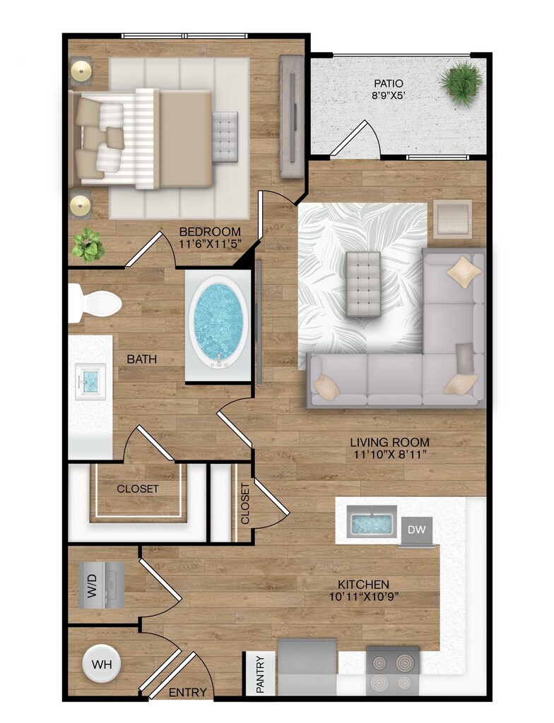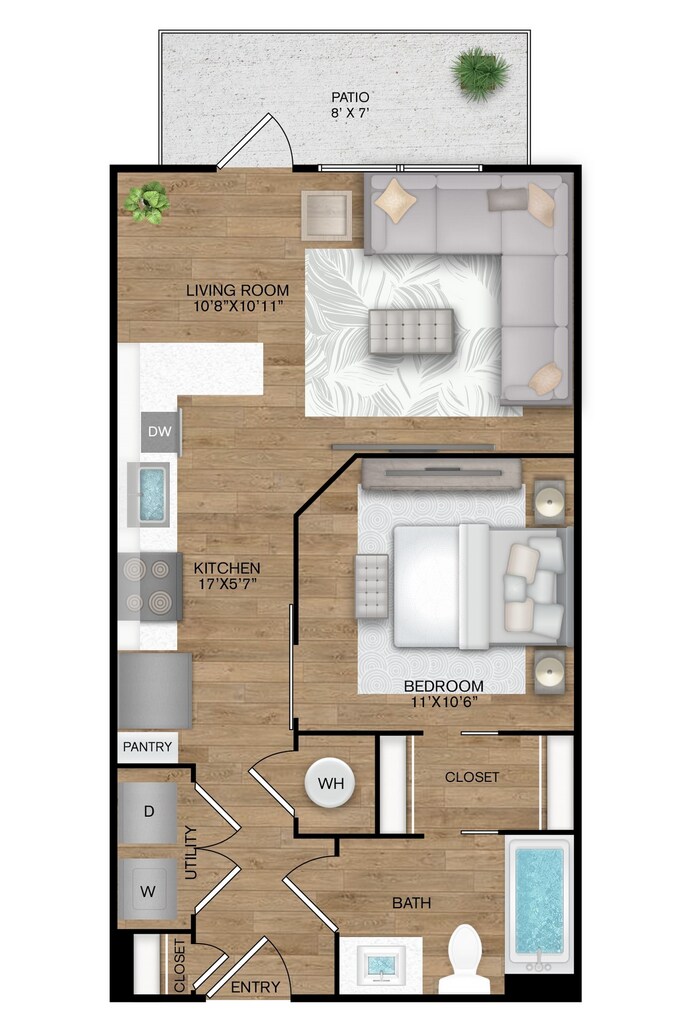 Apartment Model: A1From $1,3491 Bedroom, 1 Bath, sq ftAvailable NowFloor plans are artist's rendering. All dimensions are approximate. Actual product and specifications may vary in dimension or detail. Not all features are available in every rental home. Prices and availability are subject to change. Base rent is based on monthly frequency. Additional fees may apply, such as but not limited to package delivery, trash, water, amenities, etc. Deposits vary. Please see a representative for details.