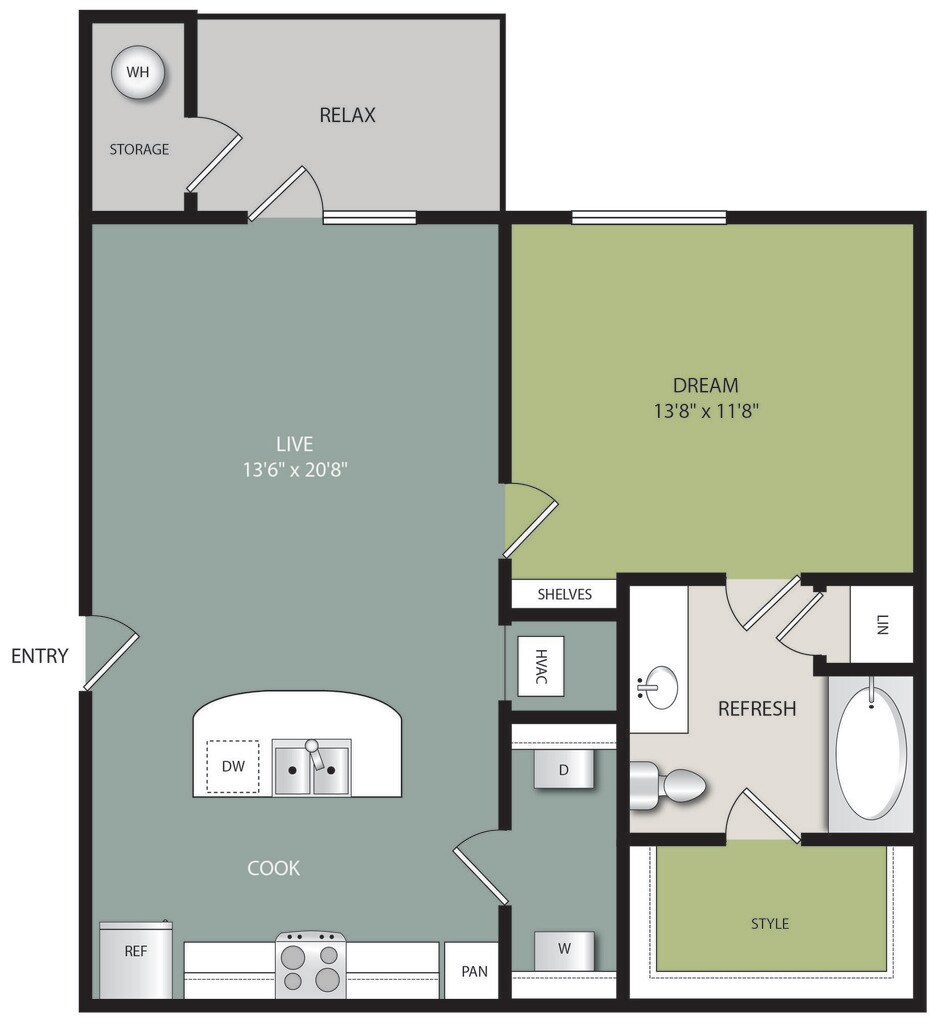 Apartment Model: A1From $1,0201 Bedroom, 1 Bath, 628 sq ftUnavailableFloorplansPhotos![]()