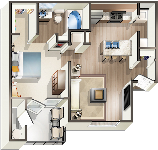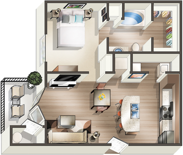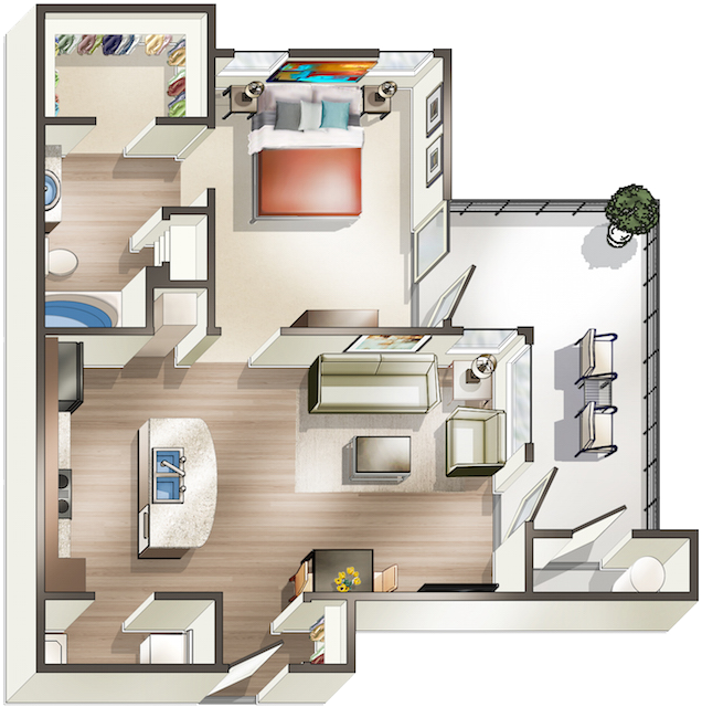 1 Bed, 1 Bath, 697 sq ftModel Gallery