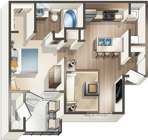 1 Bed, 1 Bath, 757 sq ftAvailable NowLargest 1 BedroomThis is the largest 1 Bedroom at this PropertyModel Gallery