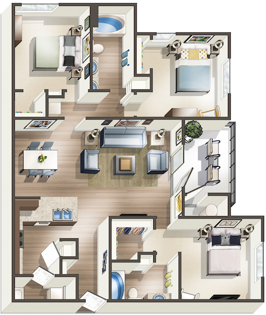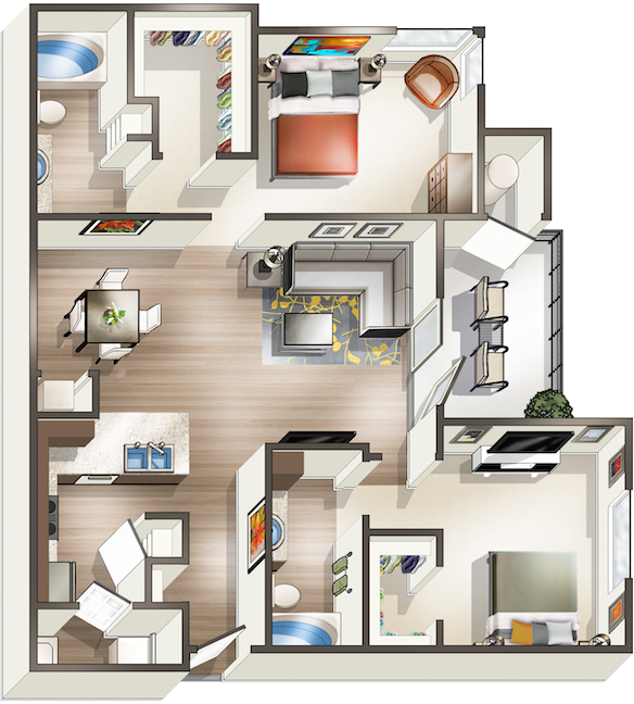 Apartment Model: C1From $1,5893 Bedroom, 2 Bath, 1282 sq ftUnavailable![]()