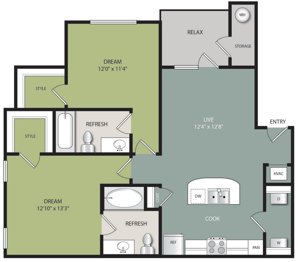 2 Beds, 2 Baths, 1125 sq ftModel Gallery