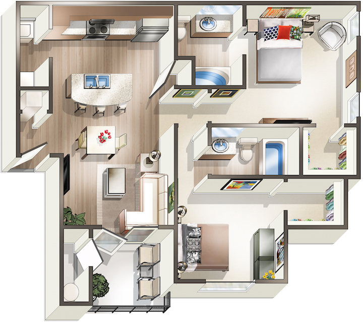 2 Beds, 2 Baths, 959 sq ftModel Gallery