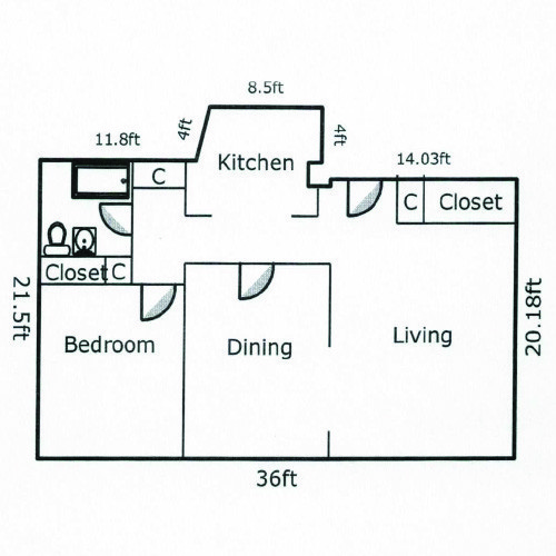 1 Bed, 1 Bath - Floorplan 1 Apartment Unit: 02Apartment Model: 1 Bed, 1 Bath1 Bedroom, 1 Bath, 585 sq ftAvailable November 28, 2025Apartment Unit: 46Apartment Model: 1 Bed, 1 Bath1 Bedroom, 1 Bath, 585 sq ftAvailable January 1, 20261 Bed, 1 Bath - Basement