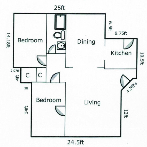 2 Bed, 1 Bath - 860 SF - Floorplan 1 Apartment Unit: 24Apartment Model: 2 Bed, 1 Bath - 860 SF2 Bedroom, 1 Bath, 860 sq ftAvailable December 17, 2025Apartment Unit: 27Apartment Model: 2 Bed, 1 Bath - 860 SF2 Bedroom, 1 Bath, 860 sq ftAvailable December 17, 20252 Bed, 1 Bath - Den