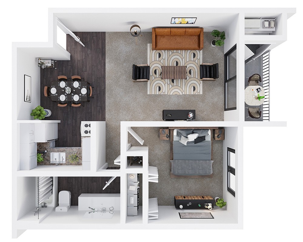 1 Bed, 1 Bath, 647 sq ftModel Gallery