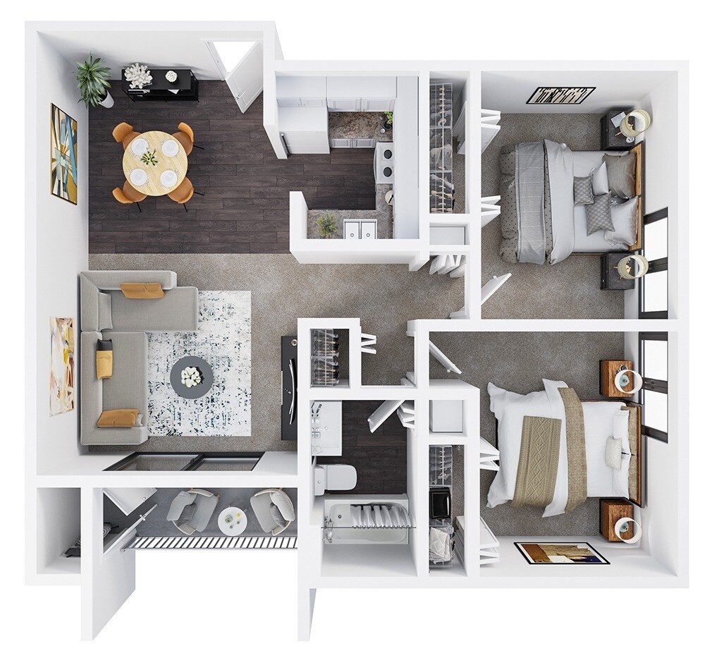 2 Beds, 1 Bath, 828 sq ftAvailable NowModel Gallery