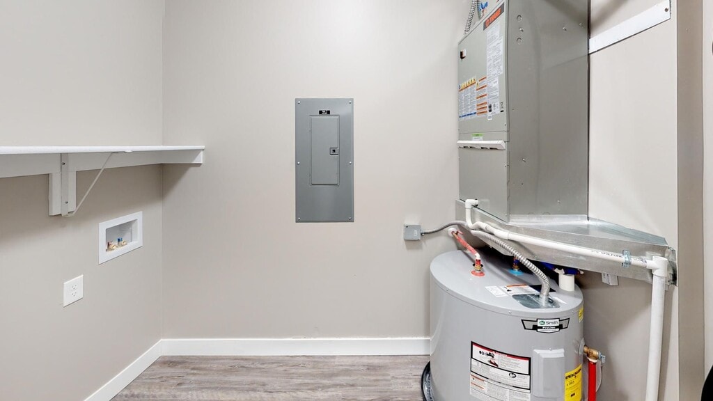 The Clarkson is a medium sized, interior one bedroom apartment. Featuring a large closet in the bedroom and utility room. This unit is furnished with stainless steel appliances and luxury vinyl planking. The laundry room provides hookups for your washer and dryer.