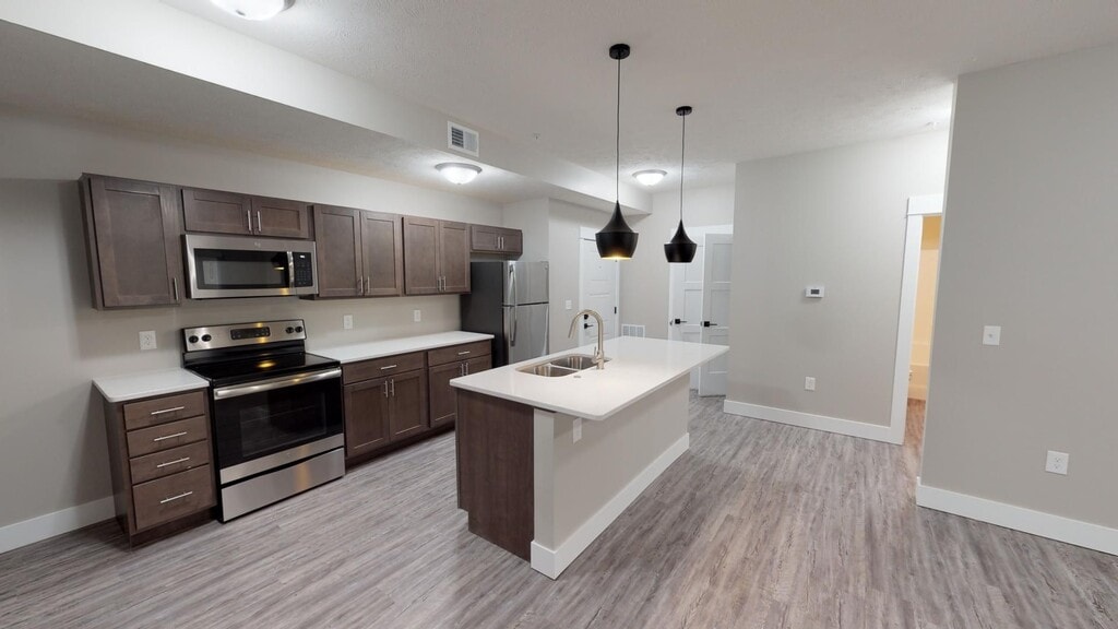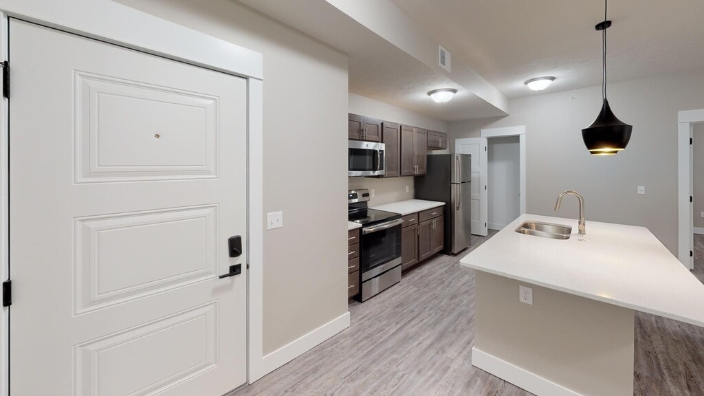 The Preston is an ADA apartment. Located on the first floor, this unit is completely wheelchair accessible which features a walk-in shower, lower countertops, luxury vinyl planking and stainless steel appliances. The laundry room provides hookups for your washer and dryer.