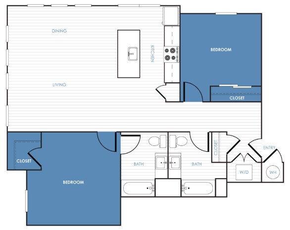 1 Bed, 1 bath - Floorplan 1 2 Bedrooms