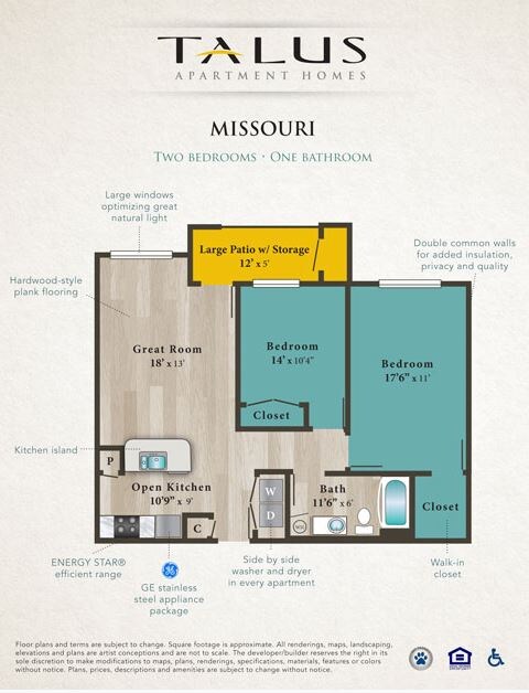 Apartment Model: Missouri$1,6752 Bedroom, 1 Bath, 942 sq ftAvailable November 12, 2025![]()