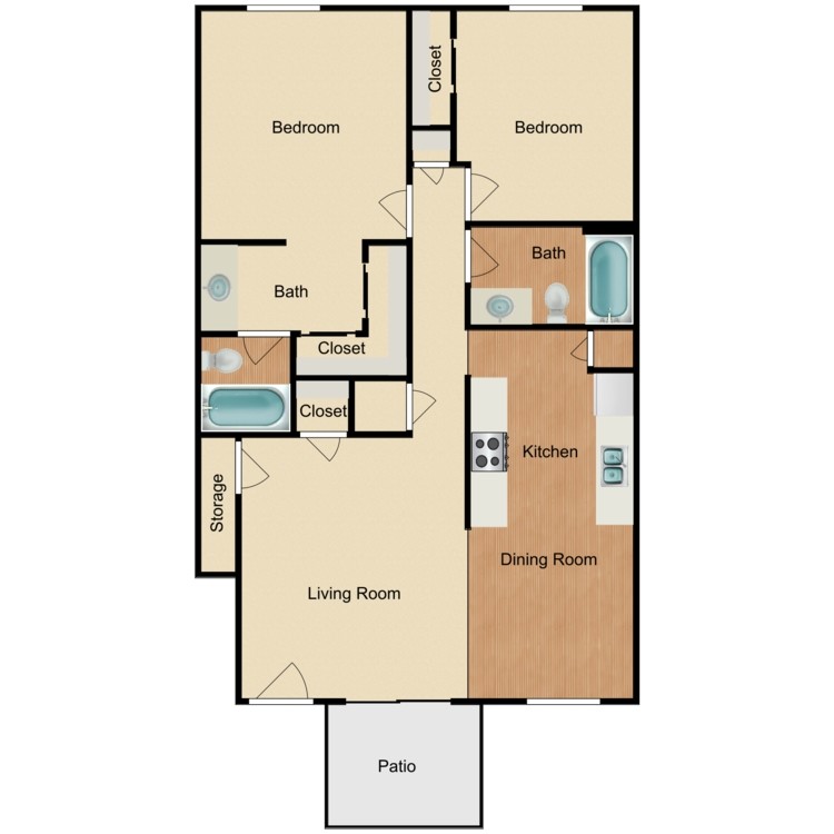 2 Beds, 2 Baths, 1000 sq ftAvailable NowLargest 2 BedroomThis is the largest 2 Bedroom at this PropertyModel Gallery