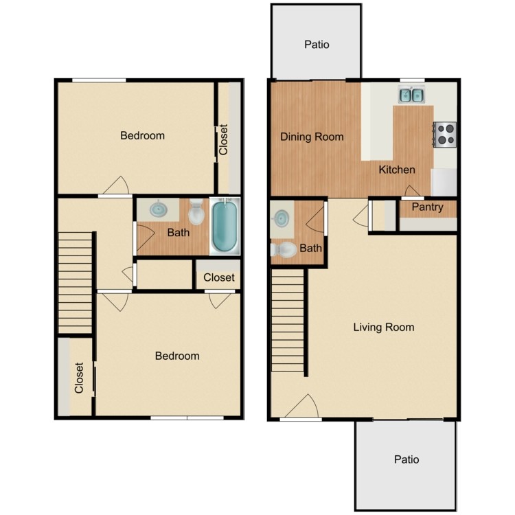 Apartment Model: 2 Bed 1.5 Bath Townhome$2,8752 Bedroom, 1.5 Bath, 840 sq ftAvailable Now![]()