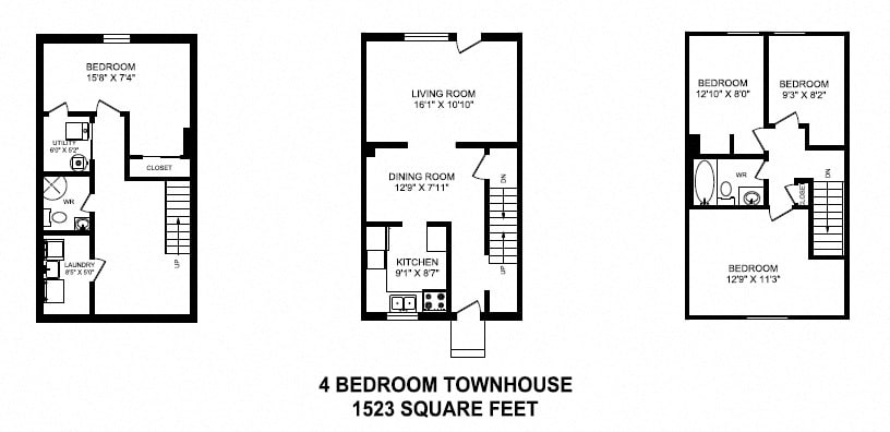 - Spacious three and four bedroom townhomes