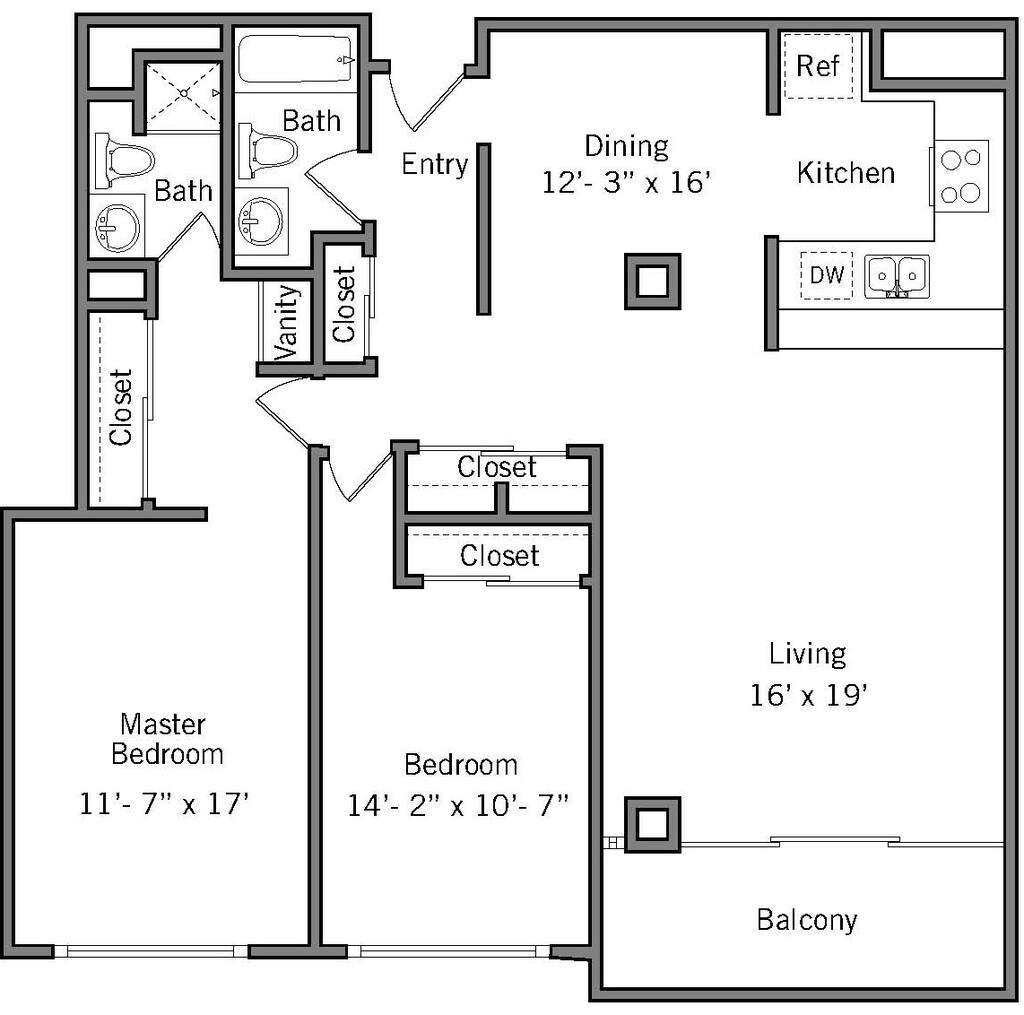 2D - Floorplan 1 Apartment Unit: 804Apartment Model: 2D$5,9002 Bedroom, 2 Bath, 1174 sq ftAvailable November 19, 2025Floorplan 2A