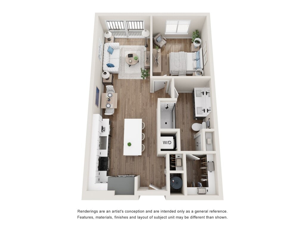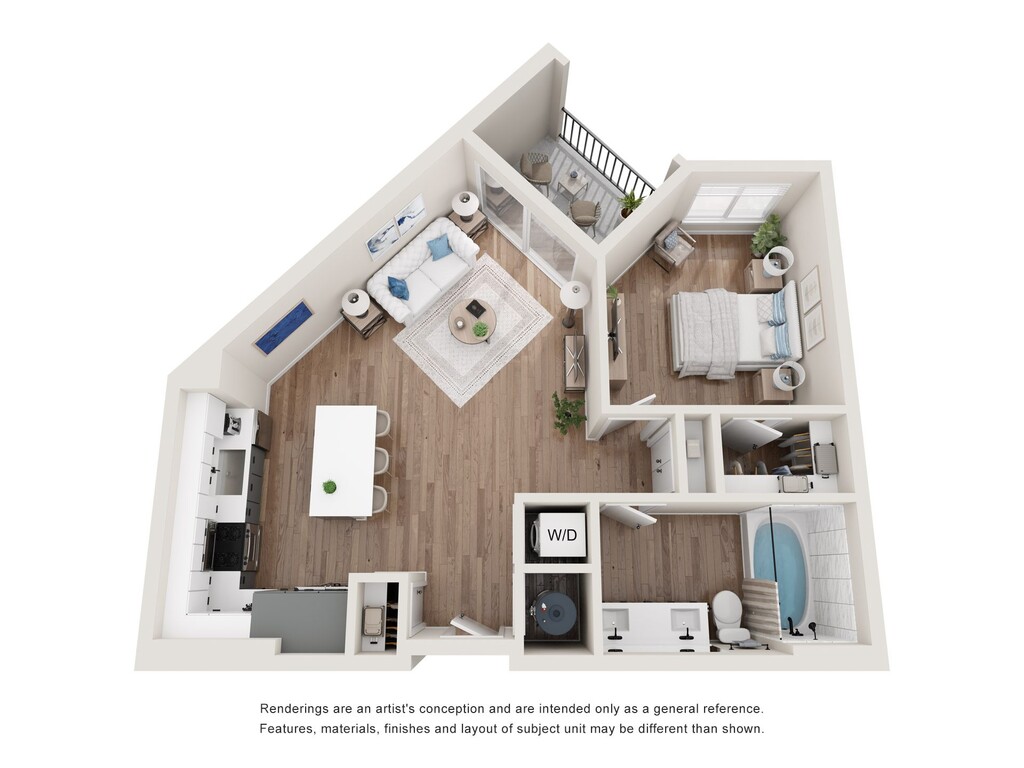 Apartment Model: A1From $1,7971 Bedroom, 1 Bath, 566 sq ftAvailable NowFloor plans are artist's rendering. All dimensions are approximate. Actual product and specifications may vary in dimension or detail. Not all features are available in every rental home. Prices and availability are subject to change. Base rent is based on monthly frequency. Additional fees may apply, such as but not limited to package delivery, trash, water, amenities, etc. Deposits vary. Please see a representative for details.