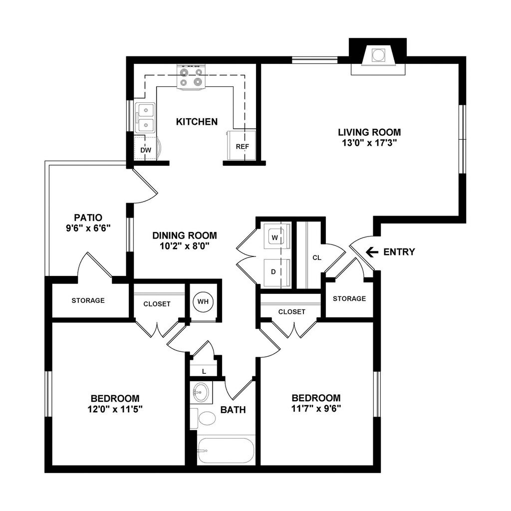 The Oak - Floorplan 2 Apartment Unit: 0110Apartment Model: The Oak$1,3151 Bedroom, 1 Bath, 783 sq ftAvailable Now2 Bedrooms