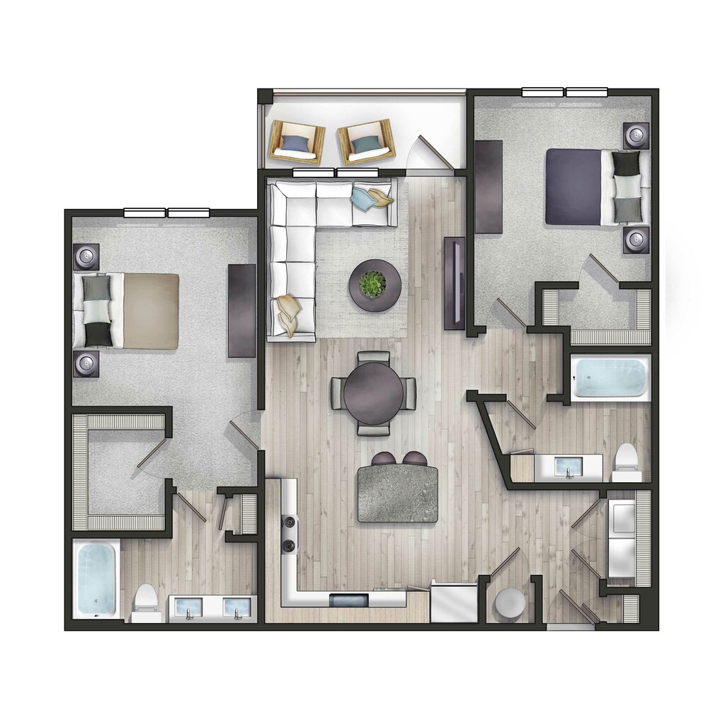 1 Bed, 1.5 Baths, 1026 sq ftAvailable NowLargest 1 BedroomThis is the largest 1 Bedroom at this PropertyModel Gallery
