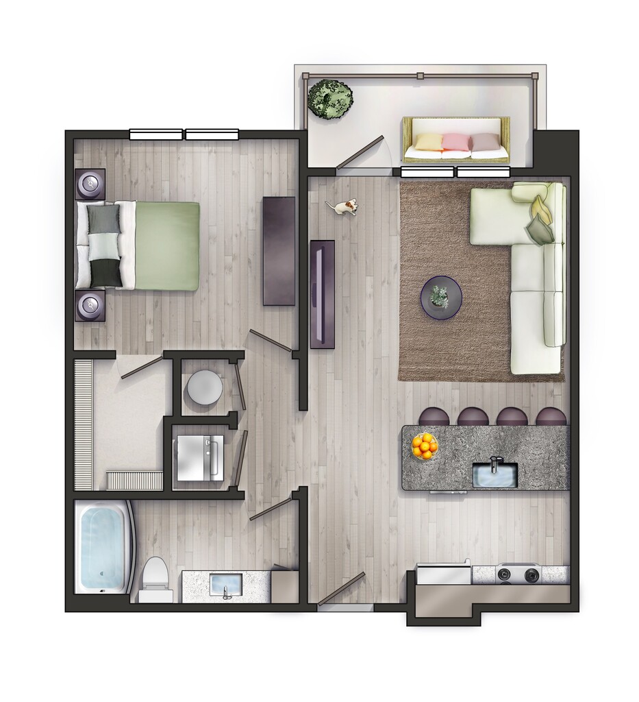 Studio, 1 Bath, 457 sq ftAvailable NowModel Gallery