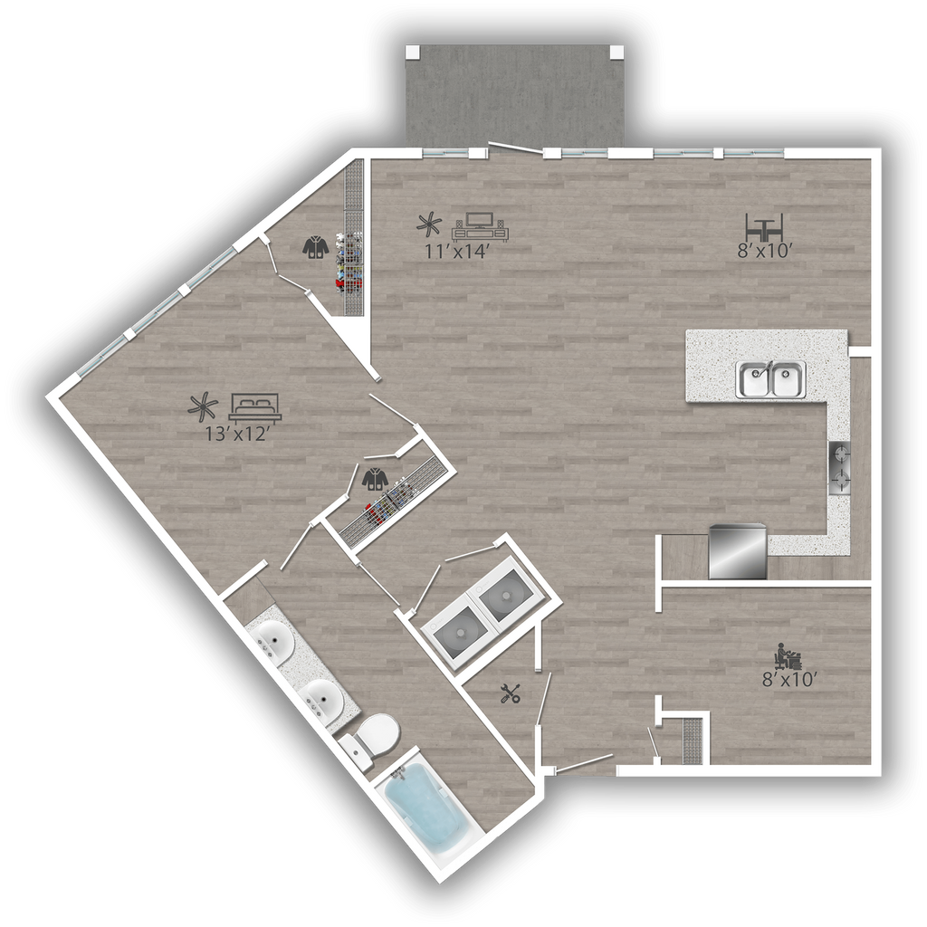 Studio, 1 Bath, 620 sq ftModel Gallery