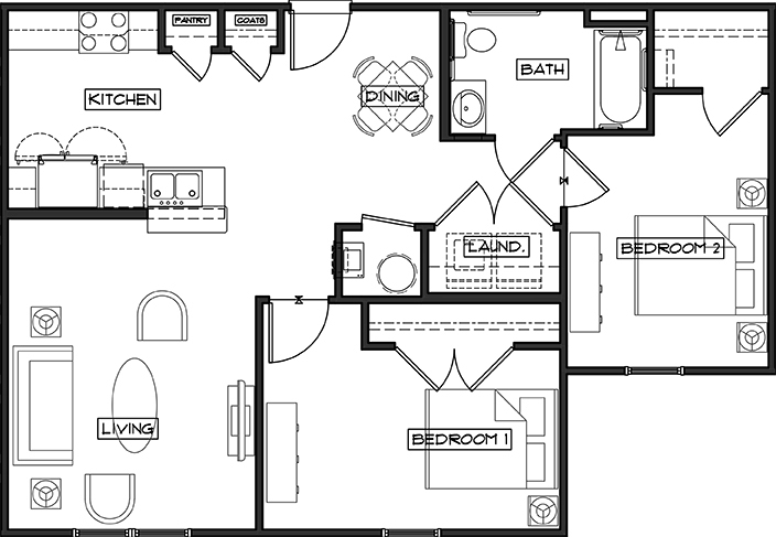 1 Bedroom - Floorplan 1 2 Bedrooms