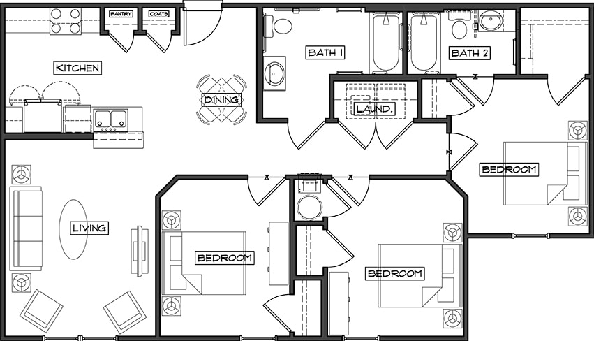 2 Bedroom - Floorplan 1 3 Bedrooms