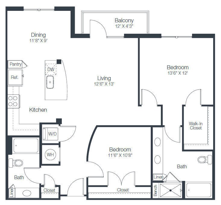 1 Bed, 1 Bath, 755 sq ftAvailable NowModel Gallery