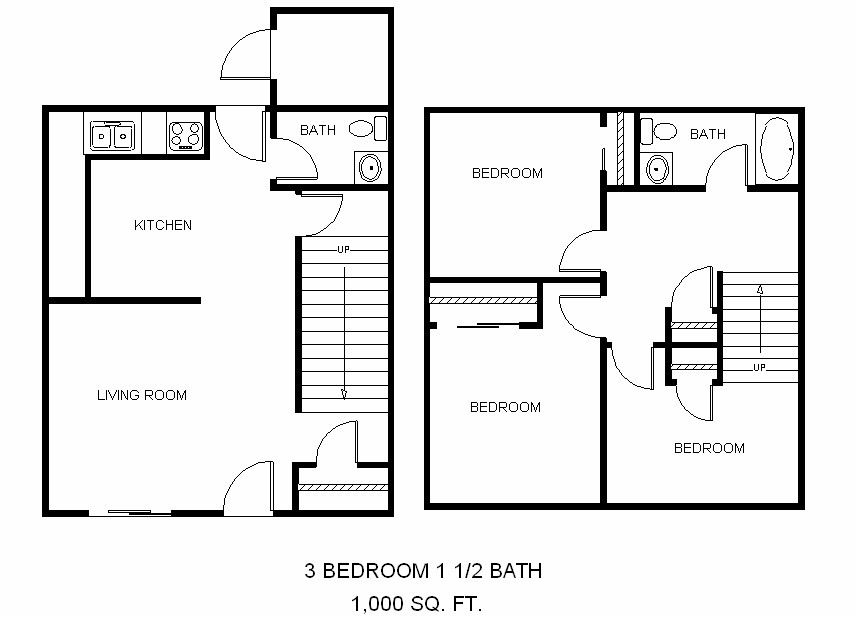 3 Beds, 1.5 Baths, 1000 sq ftAvailable NowModel Gallery