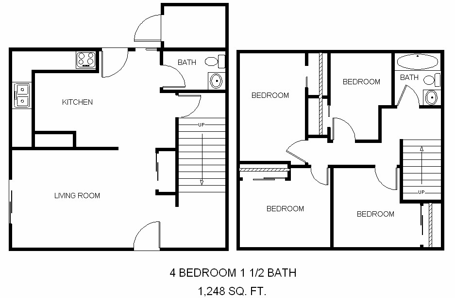 Apartment Model: Four BedroomCall For Rates4 Bedroom, 1.5 Bath, 1248 sq ftUnavailable![]()