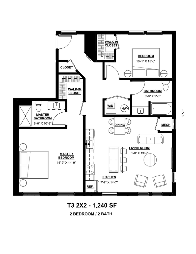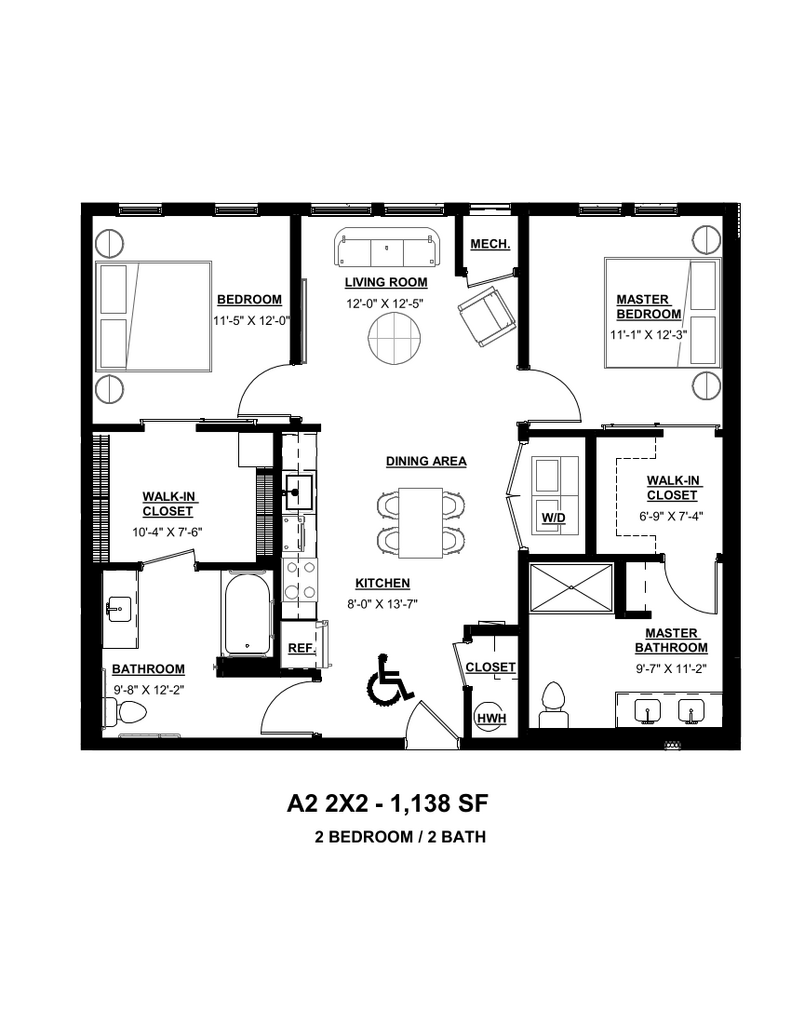 A2 - Floorplan 1 Apartment Unit: 112Apartment Model: A2$2,4032 Bedroom, 2 Bath, 1138 sq ftAvailable May 15, 2026Floorplan T6