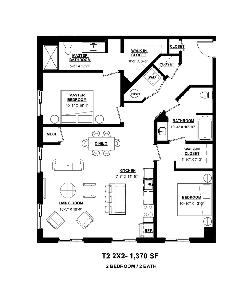 2 Beds, 2 Baths, 1370 sq ftLargest 2 BedroomThis is the largest 2 Bedroom at this PropertyModel Gallery