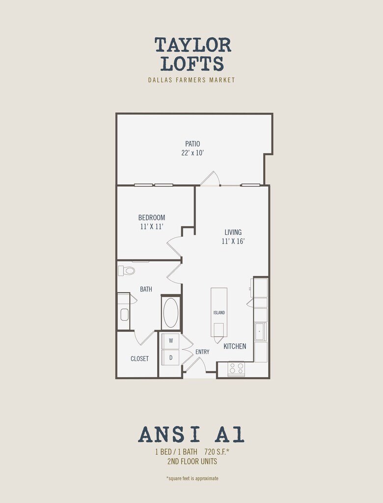 A1 - Floorplan 1 Apartment Unit: 214Apartment Model: A11 Bedroom, 1 Bath, 720 sq ftAvailable January 20, 2026A1-1