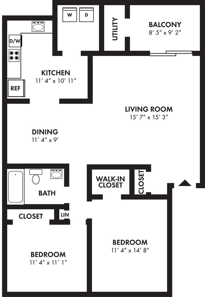 Apartment Model: Two Bedroom - 1,100 sqftFrom $1,4002 Bedroom, 1 Bath, 1100 sq ftAvailable NowFloorplansPhotos![]()