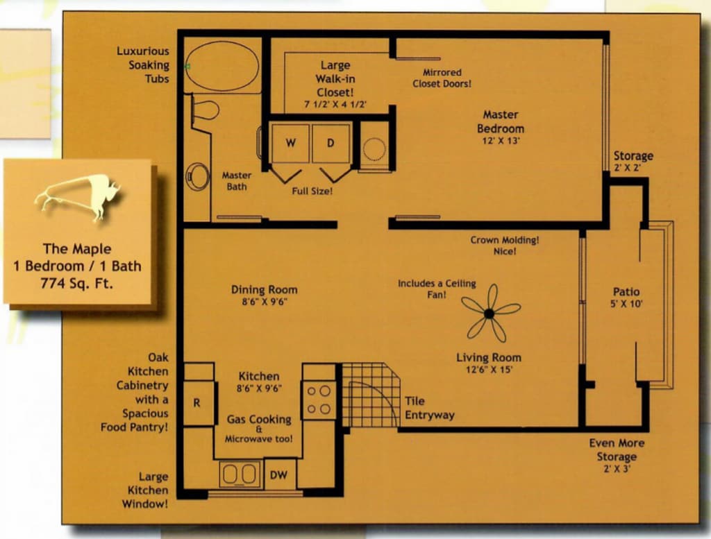 Apartment Model: 1B: Maple (TR)From $1,2201 Bedroom, 1 Bath, 774 sq ftAvailable Now![]()