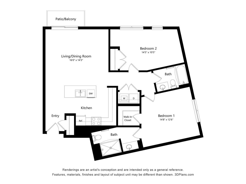 1 Bedroom A - 60% - Floorplan 2 ![]()