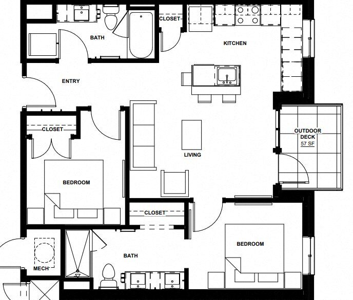 Suite D - Floorplan 1 Apartment Unit: 303Apartment Model: Suite D2 Bedroom, 2 Bath, 906 sq ftAvailable NowSuite F