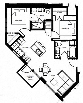 Suite F - Floorplan 1 Apartment Unit: 308Apartment Model: Suite F2 Bedroom, 2 Bath, 862 sq ftAvailable NowSuite G