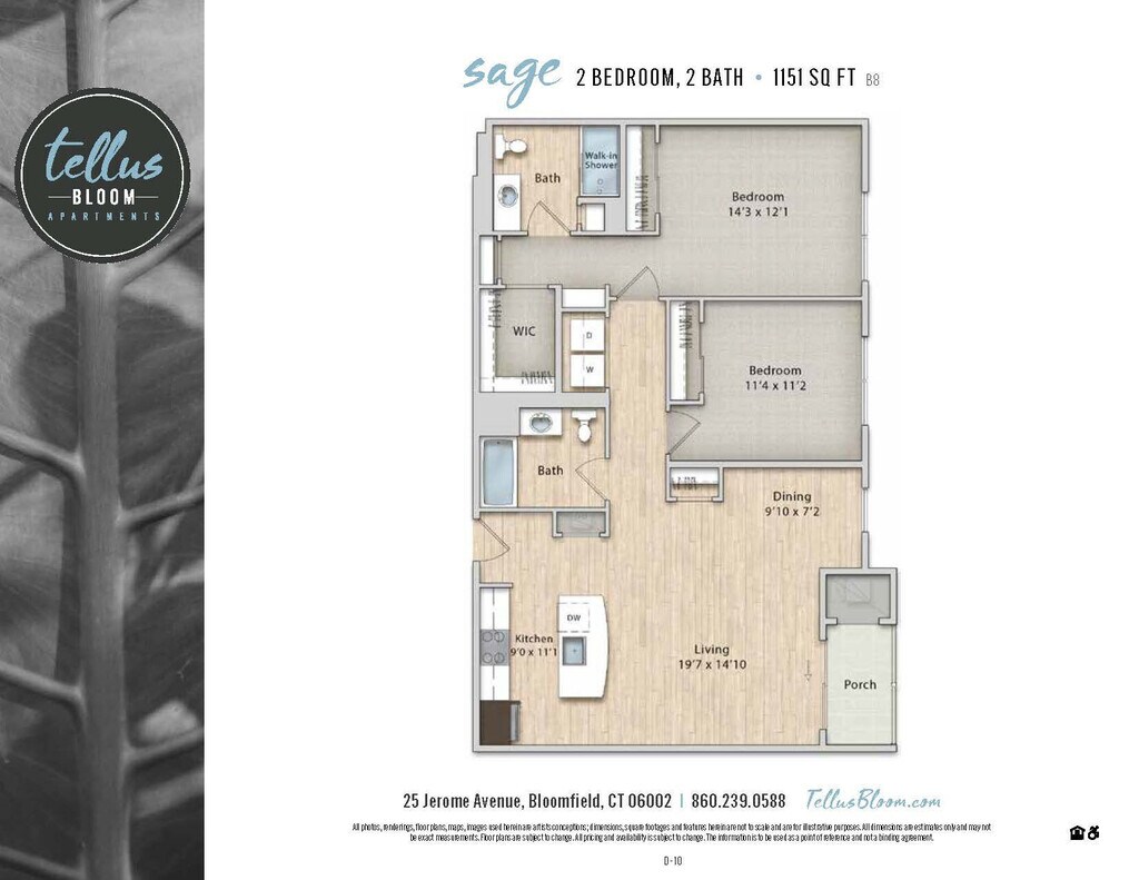 Apartment Model: SageCall For Rates2 Bedroom, 2 Bath, 1151 sq ftUnavailable![]() - Sage - Floorplan 1