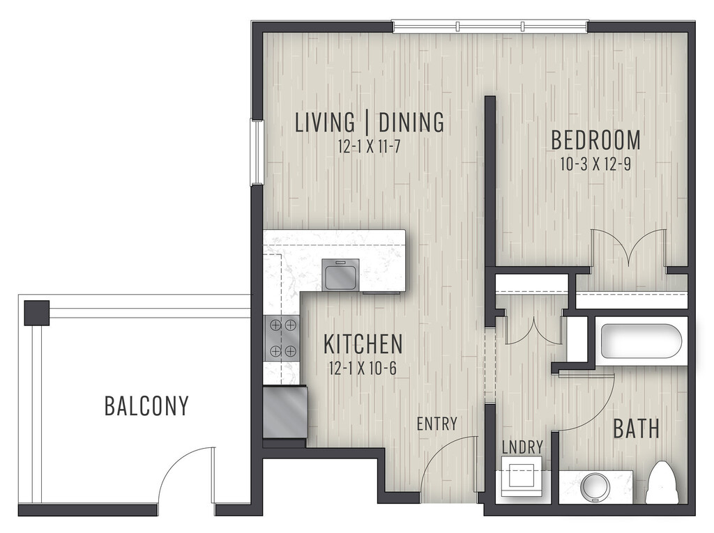 Apartment Model: Rosedale$2,1431 Bedroom, 1 Bath, 795 sq ftUnavailable![]() - Rosedale - Floorplan 1