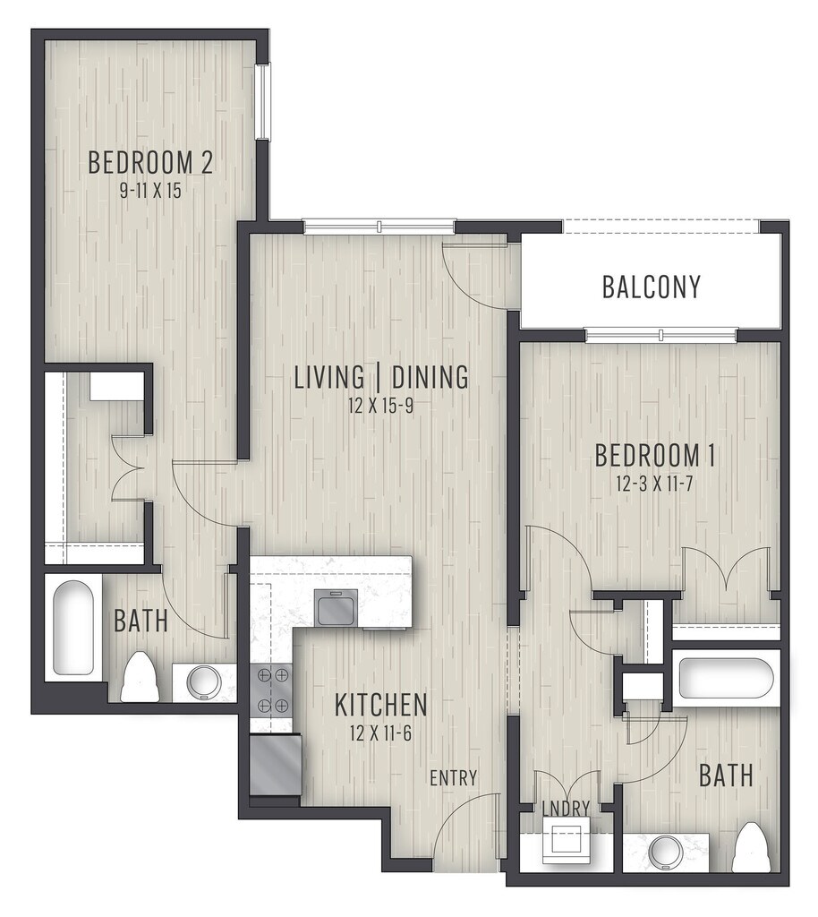 - 2 Bedrooms- Stratton2 Beds, 1 Bath, 874 sq ft- Model Gallery- Floorplans- Availability Details- Price - Availability Date - Unit - Sq Ft - Deposit - $2,749 - Call for Availability - Stratton - 874 sq ft - $1,000 - Model Amenities and Features- Unique Features- Black Dome Pendant Lights