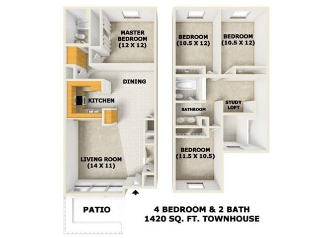 4 Beds, 2 Baths, 1420 sq ftAvailable NowModel Gallery